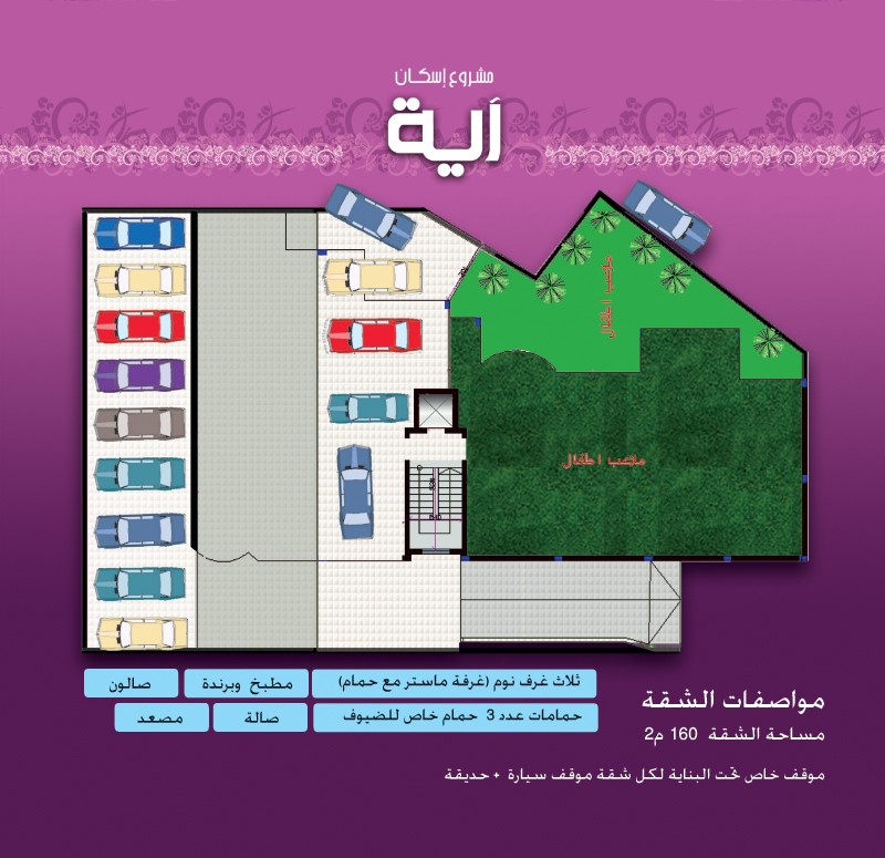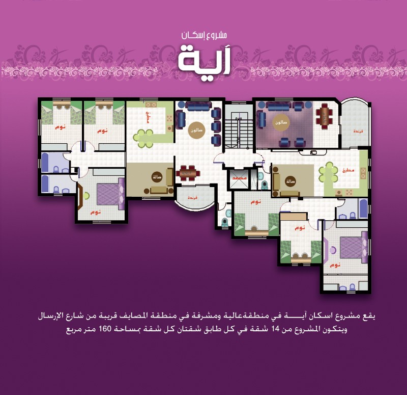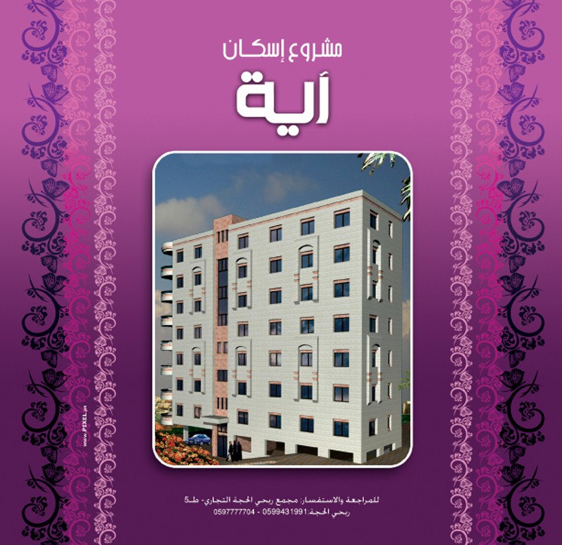 الموقع:المصايف بالقرب من شارع الارسالالمساحات:160 متر.الحالة:منجزوصف المشروع:شقق سكنيةالتصنيفمنزليالعدد: 14 شقة نشرة المشروع موقع المشروع للحجز والاستفسار